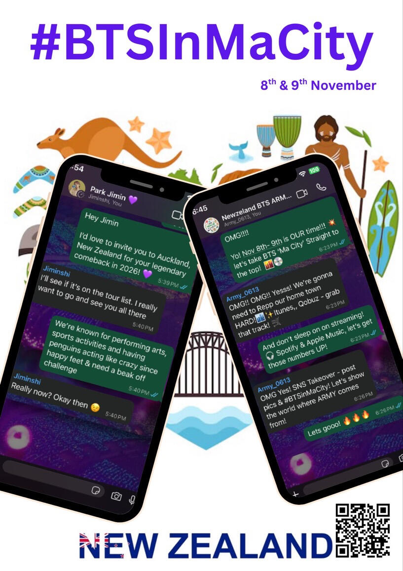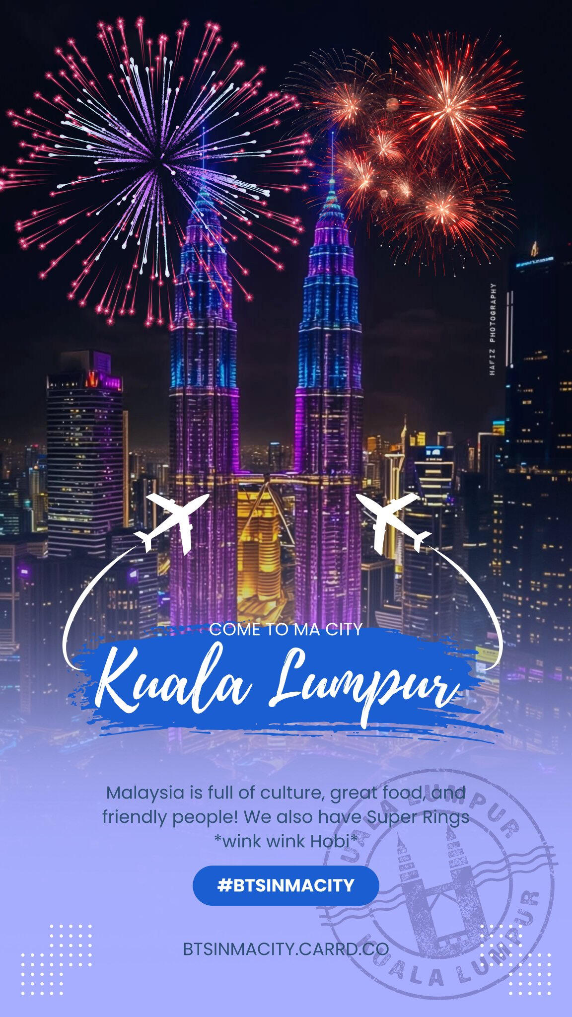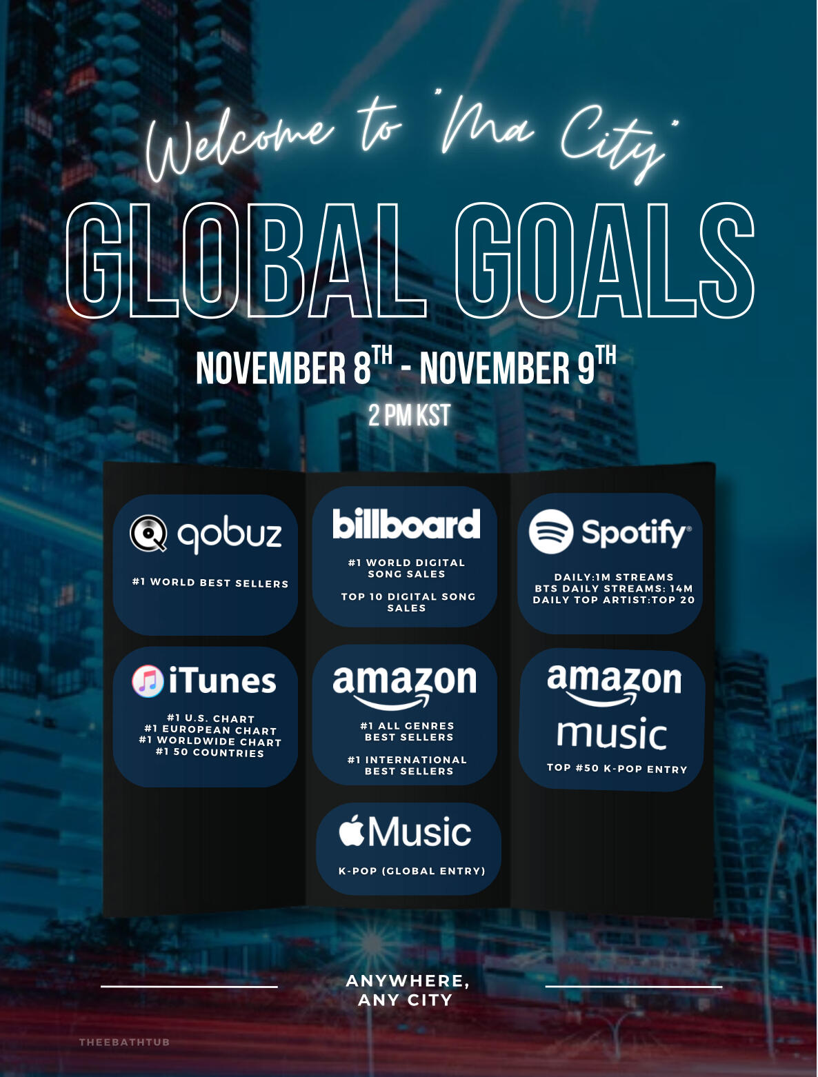 On November 8th & 9th beginning at 2P KST invite BTS to your city for the 2026 Comeback by buying & streaming “Ma City” while spreading the hashtag #BTSInMaCity.Post pictures or videos of your city with why they should come or use some of our special invitations!