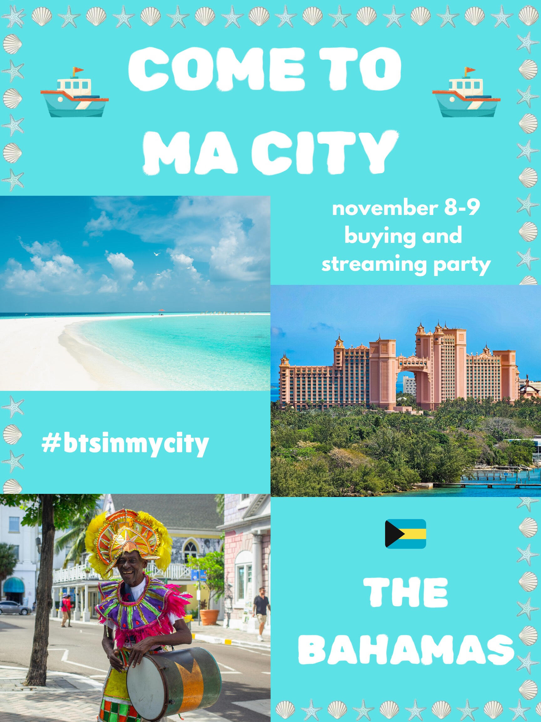 You will have four steps to complete on your way to getting BTS to come to your city.1. Invitations/Tickets- They need that all important invite to know where to go2. Buy/Donate - Starting Nov 8th at 2pm KST buy “Ma City” on iTunes, Amazon or Qobuz. You can also donate to others who may need a little extra help3. Choose some road trip music either by listening on Stationhead, Weverse or choosing a playlist4. Spread the word and goals to fellow ARMY through pre-made graphics or make your own