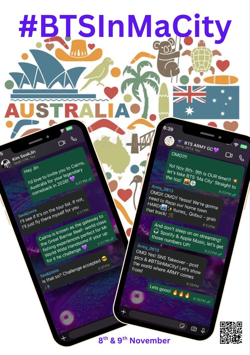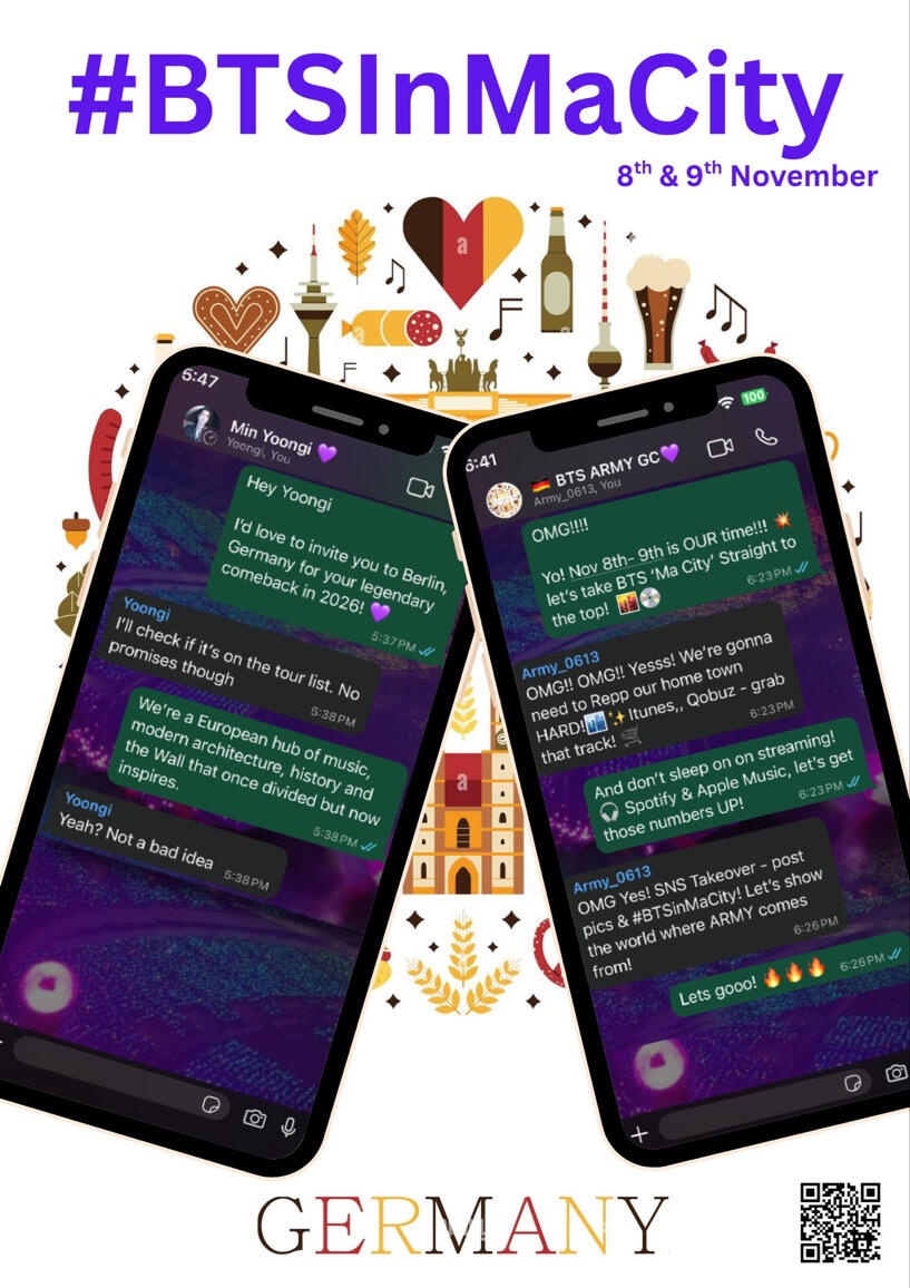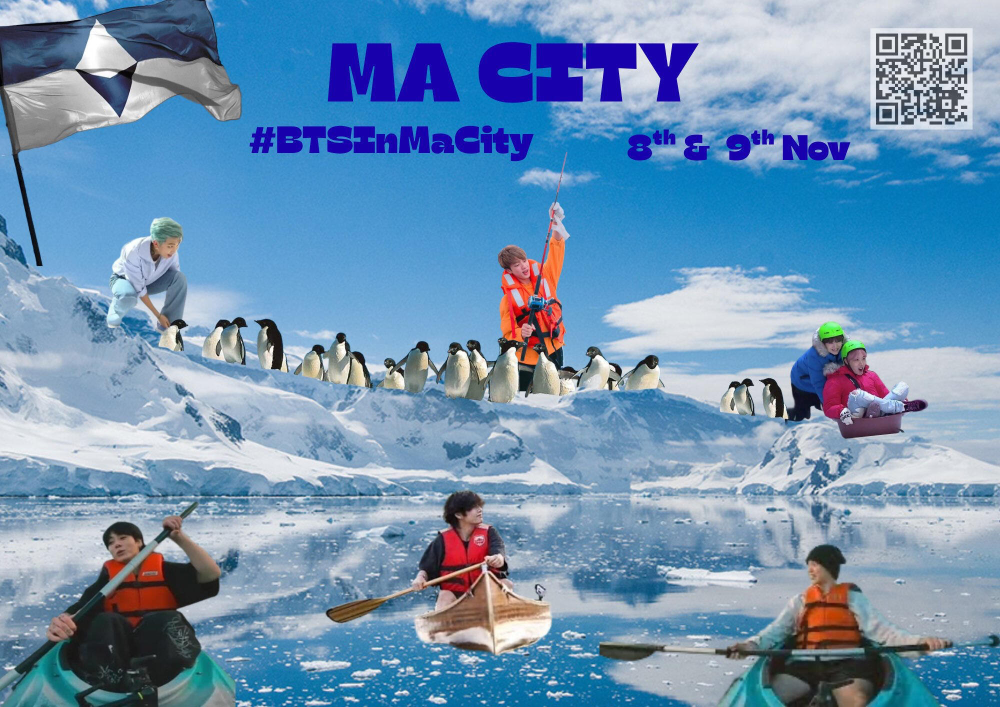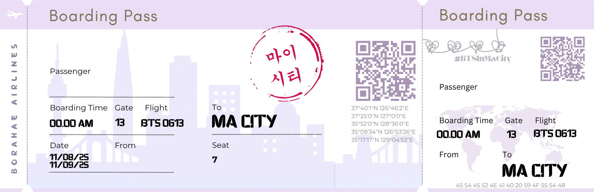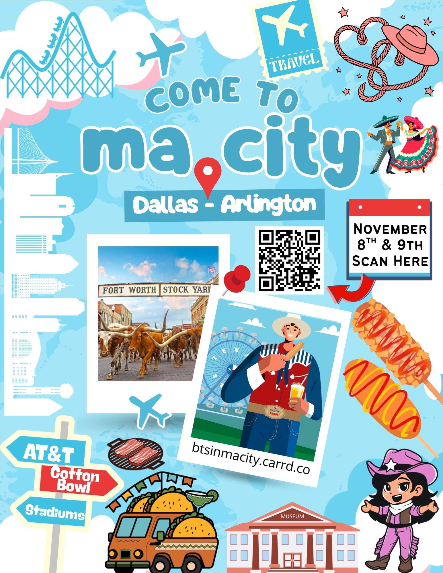 On November 8th & 9th beginning at 2P KST invite BTS to your city for the 2026 Comeback by buying & streaming “Ma City” while spreading the hashtag #BTSInMaCity.Post pictures or videos of your city with why they should come or use some of our special invitations!
